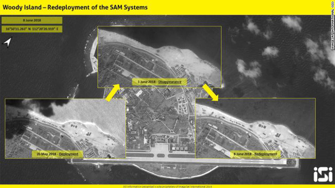 So sánh h́nh ảnh vệ tinh ngày 3/6 và 9/6 trên đảo Phú Lâm thuộc quần đảo Hoàng Sa của Việt Nam. Ảnh: ISI. Theo CNN, các hệ thống tên lửa được Trung Quốc lắp đặt trái phép đă tái xuất hiện trên đảo Phú Lâm thuộc quần đảo Hoàng Sa của Việt Nam, sau khi có thông tin cho rằng Trung Quốc đă dỡ bỏ các hệ thống tên lửa này. Các h́nh ảnh vệ tinh mới nhất được ISI đưa ra ngày hôm nay (11/6) đă chứng minh Trung Quốc lại lắp đặt trái phép hệ thống tên lửa đất đối không trên đảo Phú Lâm. Trước đó, các h́nh ảnh vệ tinh do ImageSat International (ISI) chụp được hồi đầu tháng 6 đă cho thấy hệ thống tên lửa đất đối không HQ-9 và lưới ngụy trang do Trung Quốc lắp đặt trái phép dường như đă được chuyển đến một địa điểm khác, hoặc được di chuyển trong một cuộc tập trận. Động thái này diễn ra trong bối cảnh căng thẳng giữa Mỹ và Trung Quốc trên Biển Đông ngày càng leo thang, khi Mỹ tăng cường các đợt tuần tra tại khu vực này, và Trung Quốc lần đầu tiên cho máy bay ném bom hạ cánh trái phép ở Hoàng Sa. Một số ư kiến cho rằng việc dỡ bỏ hệ thống tên lửa trái phép là phản ứng của Trung Quốc sau khi Mỹ đưa ra lời đe dọa ngụ ư có thể cho "nổ tung" các đảo nhân tạo mà Trung Quốc bồi đắp trái phép, và tăng cường tuần tra trên Biển Đông. Tại Đối thoại Shangri-La 2018, đại diện Bắc Kinh đă ngang ngược thừa nhận triển khai vũ khí và quân sự hóa trái phép trên Biển Đông nhằm bảo vệ thứ mà Trung Quốc cho là chủ quyền tại khu vực này. Ảnh vệ tinh cho thấy hệ thống tên lửa do Trung Quốc lắp đặt trái phép tái xuất hiện trên đảo Phú Lâm, sau khi tạm thời được dỡ bỏ trong vài ngày. Ảnh ISI. Khi ấy, các chuyên gia về tên lửa cũng đă tỏ ra hết sức nghi ngờ về việc Trung Quốc dỡ bỏ toàn bộ tên lửa khỏi đảo Phú Lâm. Thay vào đó, họ đưa ra giả thiết rằng Trung Quốc đă tạm thời đưa chúng đi bảo tŕ. "Do muối và độ ẩm trên đảo có tính ăn ṃn cao, nên có thể [Trung Quốc] đă đưa hệ thống tên lửa HQ-9 về đại lục để bảo tŕ theo định kỳ", ông Timothy Heath, chuyên gia phân tích quốc pḥng tại Tập đoàn Rand, nhận định. Hiện Trung Quốc vẫn chưa đưa ra b́nh luận chính thức về báo cáo trên của ISI. |