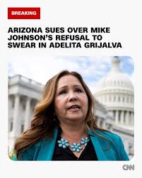 Arizona sues House Speaker Mike Johnson for refusing to seat Rep.-elect Adelita Grijalva By Caitlin Sievers The Republican speaker of the U.S. House of Representatives is thumbing his nose at the Constitution by failing to seat a Tucson Democrat nearly a month after her overwhelming victory in a September special election, U.S. Rep.-elect Adelita Grijalva and Arizona Attorney General Kris Mayes argued in a lawsuit filed Tuesday. Grijalva and Mayes want a court to declare that Mike Johnson, the GOP speaker from Louisiana, is acting unconstitutionally by refusing to allow the Democrat to take the oath of office and begin serving in Congress. They want the court to either force him to seat her or allow someone else to administer the oath of office if Johnson continues to refuse. “Speaker Johnson’s obstruction has gone far beyond petty partisan politics — it’s an unlawful breach of our Constitution and the democratic process,” Grijalva said in a statement. “The voters of Southern Arizona made their choice, yet for four weeks, he has refused to seat a duly elected Member of Congress — denying Southern Arizona its constitutional representation.” Voters in Arizona’s Seventh Congressional District overwhelmingly favored Grijalva in the Sept. 23 special election to fill the seat vacated by the March death of her father, Rep. Raúl Grijalva. But 28 days later, and a week after Arizona certified the results of the election, Johnson has continued to refuse to seat Grijalva, offering a wide range of excuses, including the government shutdown, which began Oct. 1. Johnson at one point promised to give Grijalva the oath whenever she requested, then said he’d only do it after Democrats acquiesced to Republican demands and reopened the federal government. At another time, Johnson said the delay was because Grijalva deserved all of the pomp of a swearing in ceremony — and that could only happen once the House resumes its regular session. Johnson has refused to convene the House since it passed its spending bill last month, instead telling members that they should return to their districts. Grijalva, and many others, including U.S. Sen. Ruben Gallego, an Arizona Democrat, accused Johnson of delaying Grijalva’s swearing in because she would be the 218th vote needed to force the release of the FBI’s case files concerning pedophile Jeffrey Epstein. Republicans have largely opposed doing so because President Donald Trump is reportedly featured in those files, as he and Epstein were close friends in the 1990s before they had a falling out. Johnson has denied those allegations. Epstein pleaded guilty in 2008 in Florida to a state charge of soliciting prostitution from a teenage girl after securing a non-prosecution agreement from federal prosecutors. He was then arrested in 2019 on federal sex trafficking charges and died by suicide while in prison awaiting trial. Trump and Epstein socialized frequently in high-profile circles in the 1990s, and last month congressional Democrats published a lewd birthday card that Trump sent to the convicted sex offender in 2003. Trump, administration officials and Republican politicians alike have dismissed the card as a “hoax,” while Democrats have seized on it as proof that Republicans are trying to bury details about the yearslong relationship between the president and Epstein. “Speaker Mike Johnson is actively stripping the people of Arizona of one of their seats in Congress and disenfranchising the voters of Arizona’s seventh Congressional district in the process,” Mayes said in a statement. “By blocking Adelita Grijalva from taking her rightful oath of office, he is subjecting Arizona’s seventh Congressional district to taxation without representation. I will not allow Arizonans to be silenced or treated as second-class citizens in their own democracy.” During a press conference in the nation’s Capitol on Tuesday, alongside House Minority Leader Hakeem Jeffries, Grijalva said that, after her father’s death, his office had continued to provide services to constituents in the southern Arizona district. But those services ended after the Sept. 23 election, and she can’t resume them until she’s sworn in. And without access to a budget, Grijalva’s been using her personal airline miles to travel to Washington, D.C. “You know, we’re getting a lot of attention for not being sworn in, but I’d rather get the attention for doing my job,” she said. “And I can’t do that right now without being sworn in.” In the lawsuit, Joshua Bendor, the solicitor general for Arizona, argues that Johnson doesn’t have the authority to deny Grijalva the right to her elected office simply because the U.S. House of Representatives isn’t in regular session. “If the Speaker were granted that authority, he could thwart the peoples’ choice of who should represent them in Congress by denying them representation for a significant portion of the two-year term provided by the Constitution,” Bendor wrote. Nothing in the U.S. Constitution makes the speaker’s administration of the oath of office discretionary, the state argued, and Grijalva has met all the constitutional requirements to qualify for the office. “Speaker Johnson has not identified any valid reason for refusing to promptly seat Ms. Grijalva,” Bendor wrote. “Instead…Speaker Johnson wishes to delay seating Ms. Grijalva to prevent her from signing a discharge petition that would force a vote on the release of the Epstein files and/or to strengthen his hand in the ongoing budget and appropriations negotiations.” The state argued that, by refusing to seat Grijalva, Johnson was denying her ability to exercise her authority as a congresswoman “to sign petitions, sponsor bills, obtain and provide information to her constituents about federal programs and matters pending before federal agencies, and advocate with federal agencies, all on behalf of her constituents.” John