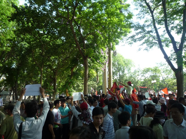 ![]() Cho tới lúc này là 11h40′, chưa thấy báo mạng VN nào đưa tin về cuộc tuần hành. 12h20′ – Một độc giả b́nh: “Tôi tham gia từ đầu, lúc 8g và ra về lúc 11g (v́ băi xe ṭa nhà Diamond plaza thông báo chỉ giữ xe đến 11g_chắc do lệnh của CA). Có thể nói chính quyền gián tiếp ủng hộ tuần hành ôn ḥa tại Tp. HCM qua việc tung lực lượng giữ ANTT, dọn đường cho đoàn, thậm chí cho phép đả đảo thoải mái trước khu vực lănh sự quán TQ. Cuộc biểu t́nh như vậy có thể nói là khá thành công (cao điểm lên đến khoảng 2000 người) về nhiều mặt. Tôi không biết ai là người tổ chức, thật đáng khen cho tinh thần quả cảm của họ. Cuộc tuần hành lần này để lại cho tôi nhiều cảm xúc, thật là 1 trải nghiệm đáng nhớ. Dù có nhiều lời bàn ra tán vào về mục đích, ư nghĩa của việc xuống đường lần này, nhưng trước thực tế đă diễn ra sáng nay, những toan tính đó hoàn toàn trở nên vô nghĩa. Đối với tôi, hành động của hàng ngàn bạn trẻ (và cả già nữa) hôm nay không chỉ là ḷng yêu nước, mà c̣n nhiều thông điệp khác mà đảng/nhà nước VN sẽ phải nhận ra. Đáng buồn, vào lúc 11g, thời điểm mà an ninh VN muốn kết thúc biểu t́nh, điều phải đến đă đến, 2 người bị bắt (1 già 1 trẻ) chưa rơ lư do. Nhiều người rất bức xúc và nhận định: chính quyền VN chơi tṛ 2 mặt.” + Biểu t́nh chống Trung Quốc tại Hà Nội và TP.HCM qua lời kể của các nhân chứng — (RFA). Tại TP.HCM, đoàn biểu t́nh tuần hành trên tất cả các tuyến đường dẫn đến Lănh sự quán TQ, lượng người tiếp tục kéo đến chật kín cả đoạn đường, kéo dài từ Nhà Thờ Đức Bà đến Đại sứ quán Mỹ, và càng lúc càng đông hơn. (Dan Lam Bao’s blog) + Tiếp theo đây là h́nh ảnh do độc giả/Nhà báo Nguyễn Quốc Thái vừa gửi từ Sài G̣n (người chụp: Cao Lập): André Menras Hồ Cương Quyết Từ trái qua: Đ́nh Vượng, Vương Đ́nh Chữ, cụ Nguyễn Đ́nh Đầu, cựu “quan chức” Mặt trận Tổ quốc Lê Hiếu Đằng, Nhà thơ Đỗ Trung Quân, Nhà báo Nguyễn Quốc Thái, cô Trần Tử Vân Anh, André Menras Hồ Cương Quyết, Huỳnh Tấn Mẫm – có thể khác tuổi tác, tôn giáo, dân tộc, quá khứ, thậm chí cả chính kiến … nhưng cùng chung một t́nh yêu đất nước![]() Đoàn tuần hành đang qua bên hông Nhà thờ Đức Bà Trước ṭa Lănh sự Trung Quốc Ngó như đi hội vậy nhưng là thứ mà bọn bành trướng khiếp sợ nhất Người Bắc, người Hà Nội chắc c̣n phải học hỏi nhiều …+ Tiếp theo là h́nh ảnh do độc giả QN gửi: Trẻ người … già dạ!![]() Những khẩu hiệu rất ôn ḥa – Chính quyền c̣n mong muốn nào hơn? Bác cháu ta cùng nhau đi giữ nước! Nghèo nhưng không hèn! Bé tập quen dần để lớn lên không biết sợ … vu vơ Tẩy chay hàng Trung Quốc Ôi Lenin! / Có thể nào tin / Ngài đâu cho chặn mất / Một con đường đẹp nhất / Đến với Biển Đông đến với Ḥa b́nh …(Thơ: Ba Sàm+Tố Hữu. Ảnh: Gốc Sậy) Xe buưt … buồn thiu, v́ không có “những phần tử quá khích” để hốt vô đồn.Chợt muốn khóc: Các “đầy tớ” ơi! Có thấy những chủ nhân của đất nước đáng yêu đến nhường nào? Vui&Lo Ch́m&Nổi Ngồi nghĩ đường giữ nước |