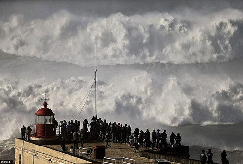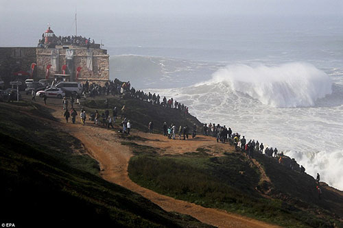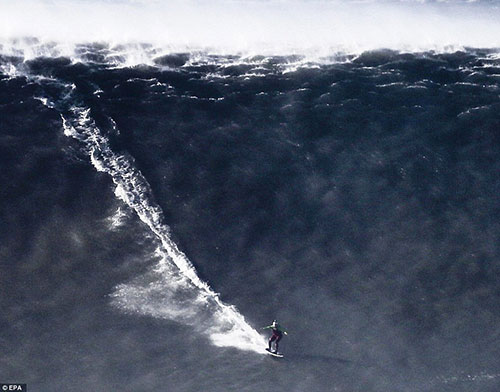 Những con sóng "khủng" tại một ngôi làng thuộc Nazare, Bồ Đào Nha luôn cuốn hút những tay lướt ván chuyên nghiệp tới chinh phục.