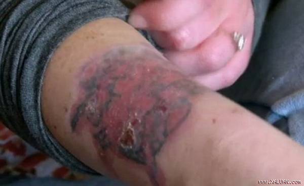 Không có tiền xóa hình xăm bằng lazer, cô gái người Anh đã tự tìm loại thuốc trên mạng và tự xử. Nhưng kết quả thật kinh khủng khi cô bị thối rữa hoàn toàn chỗ thịt mà cô bôi thuốc xóa hình xăm. Đau đớn và tuyệt vọng không biết bao giờ cô mới khỏi.
