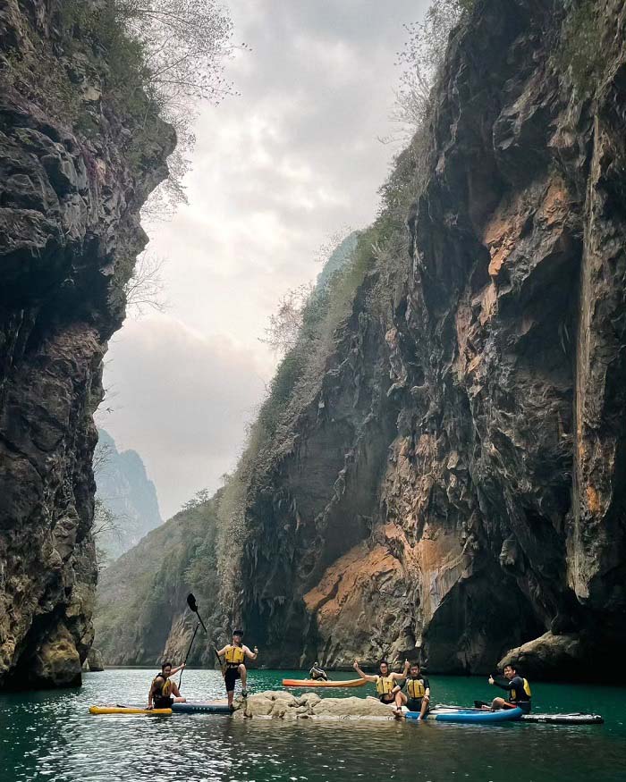 Hẻm vực Khâu Vai Hà Giang còn được gọi là “tiểu Tu Sản” vì vẻ đẹp hùng vĩ, diễm lệ giữa miền núi cao nguyên đá. Đến đây, du khách có thể dành thời gian cắm trại hoặc chèo SUP, chèo kayak.