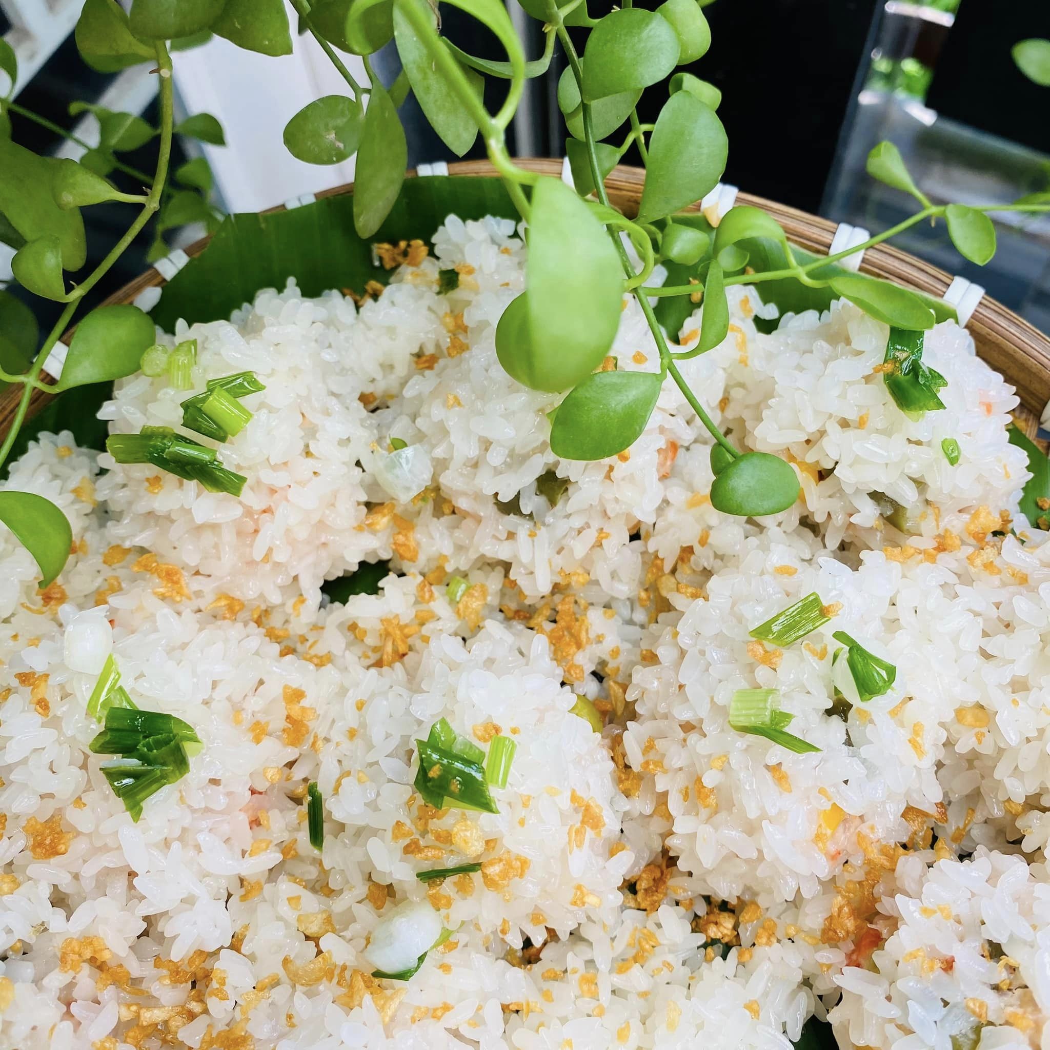 - Xôi viên tôm thịt sau khi được hấp chín có lớp nếp mềm, dẻo bên ngoài kết hợp với vị tôm thịt đậm đà bên trong, thêm topping mỡ hành và hành phi món xôi viên càng trở lên hấp dẫn.