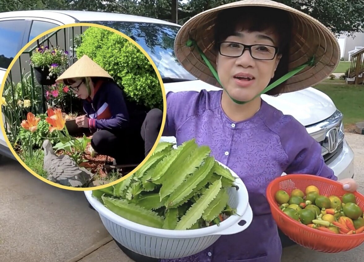 Ở khu vườn của mình, tôi tự trồng trái ớt, trái cà, trồng những thứ mà hồi xưa tôi ở Việt Nam có người làm hết nên tôi không biết làm gì.