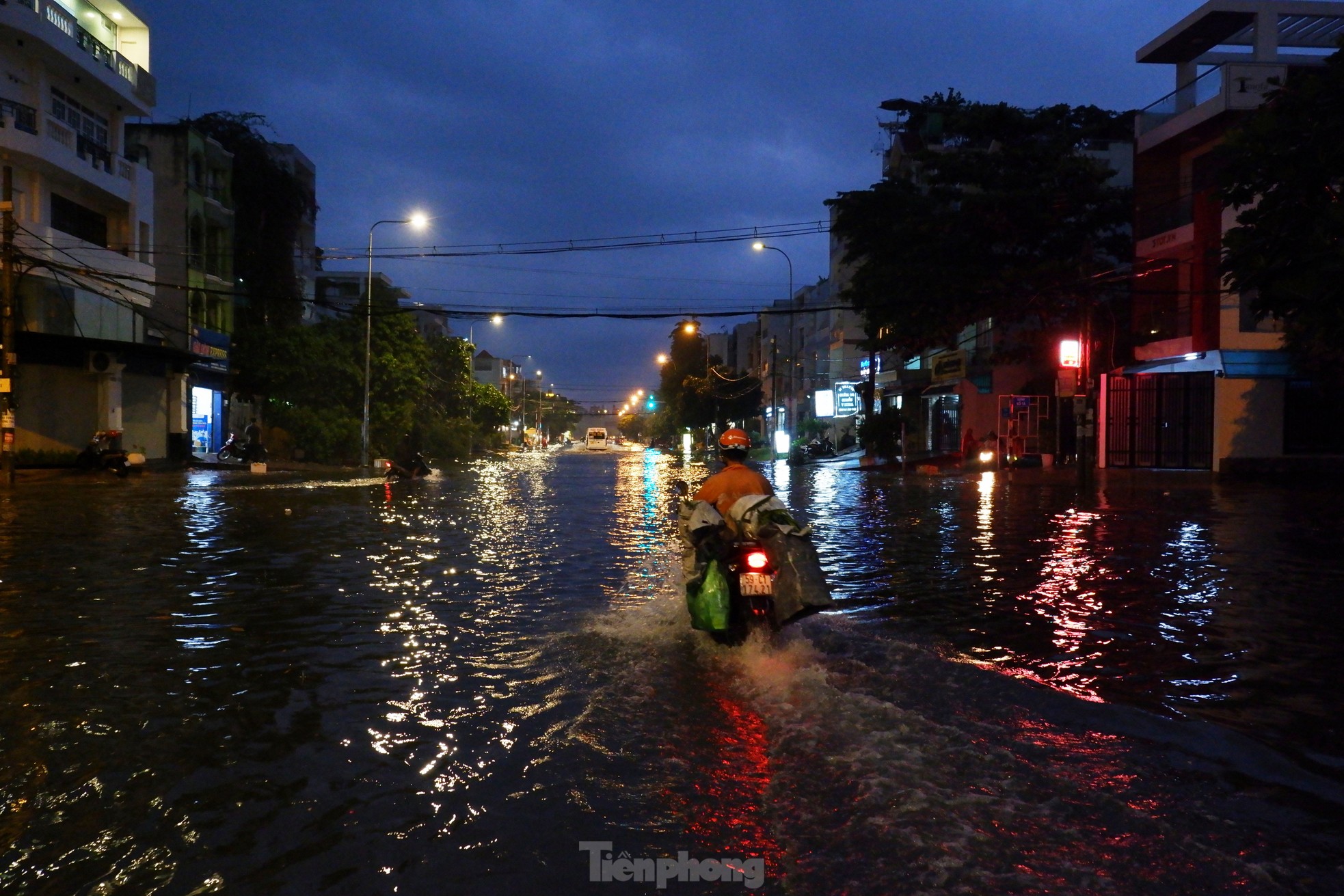 Cơn mưa lớn kéo dài suốt nhiều giờ khiến một loạt tuyến đường ở quận Bình Tân, TPHCM xảy ra tình trạng ngập úng. Hình ảnh ghi nhận tại đường Hồ Học Lãm (quận Bình Tân).