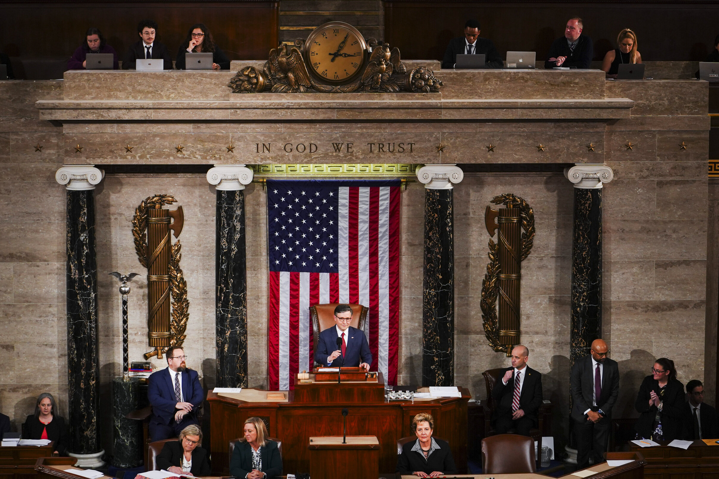 Gần cuối ṿng bỏ phiếu đầu tiên bầu chủ tịch Hạ viện—một nhiệm vụ mà Hạ viện phải thực hiện trước khi các thành viên có thể tuyên thệ nhậm chức—Johnson dường như không đạt được số phiếu cần thiết là 218, mặc dù ông được Trump ủng hộ.