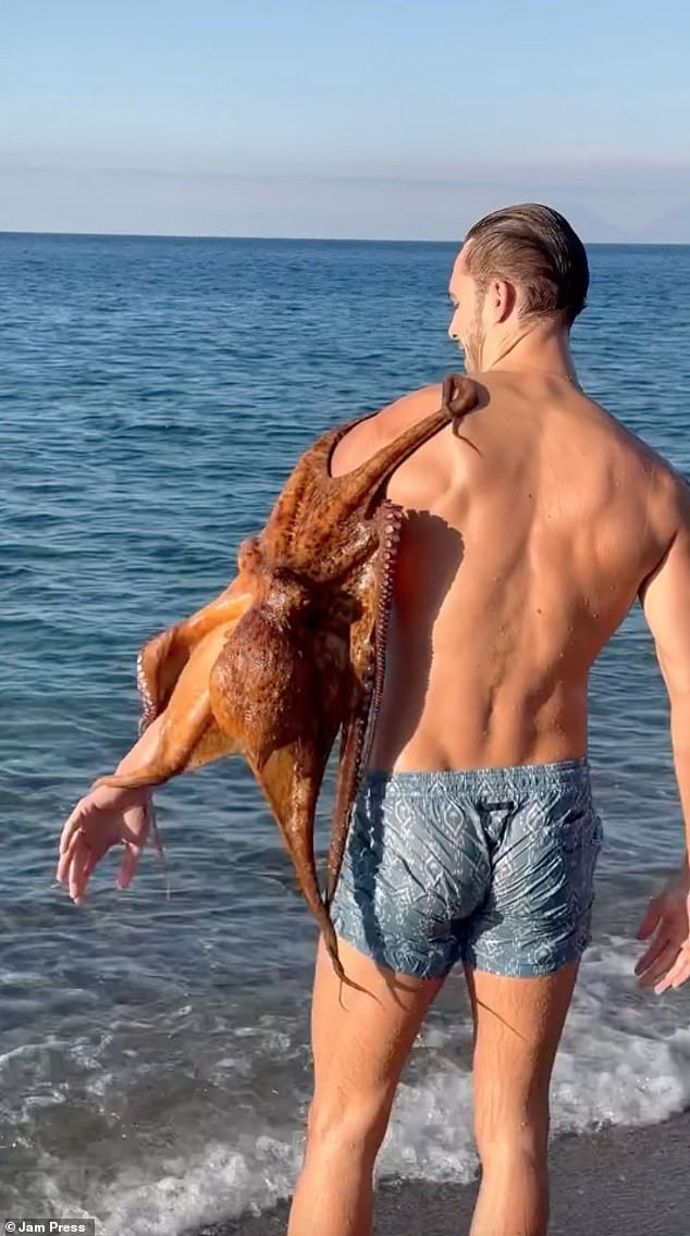 Theo đó, nam người mẫu Federico Cola (Milan, Italy) khi đang có một kỳ nghỉ ở Seychelles thì bị một con bạch tuộc quấn chặt xúc tu vào chân. Ban đầu, anh đã rất ngạc nhiên và bị kéo ngã. Sau khi nhìn rõ và nhấc con vật khỏi mặt nước, anh đã nhanh chóng tỏ ra hứng thú, thậm chí để nó bám lên người mình và xem như “bạn thân”.