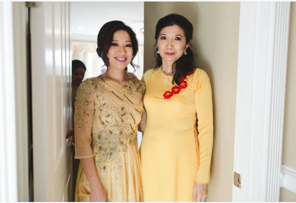 Chị Mai Vu (trái) chụp ảnh với mẹ, bà Vu Thi Thanh