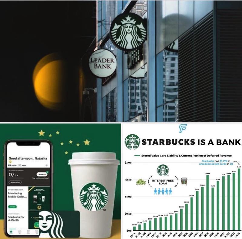As of March 2024, Starbucks had 34 million active Starbucks Rewards users and $1.9 billion in unspent rewards stored—similar to customer deposits. Meanwhile, 85% of US banks have less than $1 billion in assets.