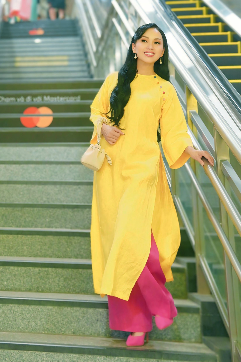 "Ca sĩ tỷ phú" Hà Phương cùng Trần Sang và Thái San thực hiện bộ ảnh áo dài retro tại tuyến metro số 1 TPHCM nhân dịp Tết Ất Tỵ 2025.