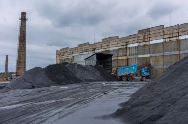 Một chiếc xe tải đang dỡ quặng titan đã tinh chế một phần tại một nhà máy ở phía đông Kiev vào tháng 6/2024. Ảnh: NYT