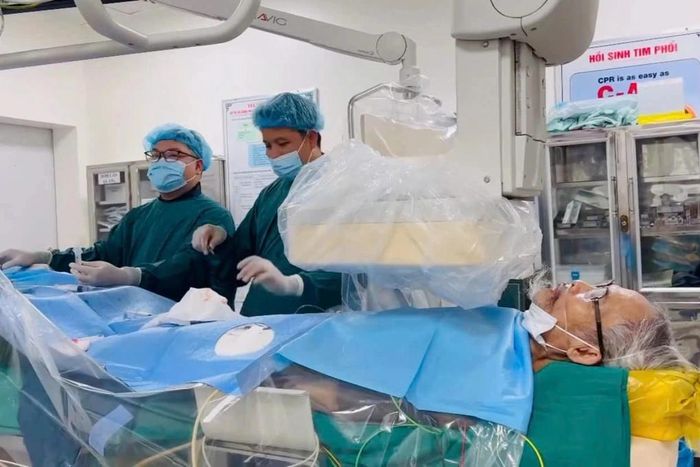 Ông Trần Xuân Dạn được các bác sĩ thực hiện thủ thuật nút mạch. Ảnh: Bệnh viện Hữu nghị Việt Nam - Cuba Đồng Hới.