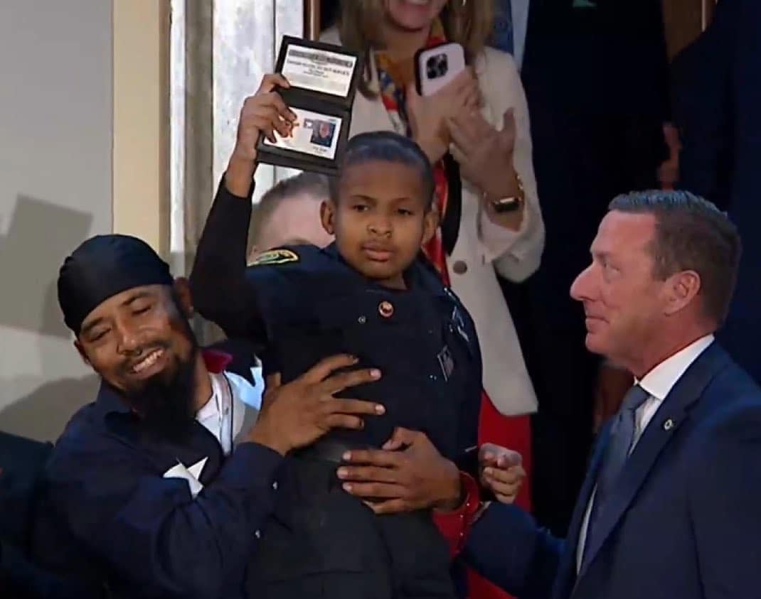 Trong bài phát biểu trước Quốc hội hôm nay, Tổng thống Trump đã biến giấc mơ của DJ thành hiện thực khi bổ nhiệm cậu làm đặc vụ danh dự của Cơ quan Mật vụ Hoa Kỳ.