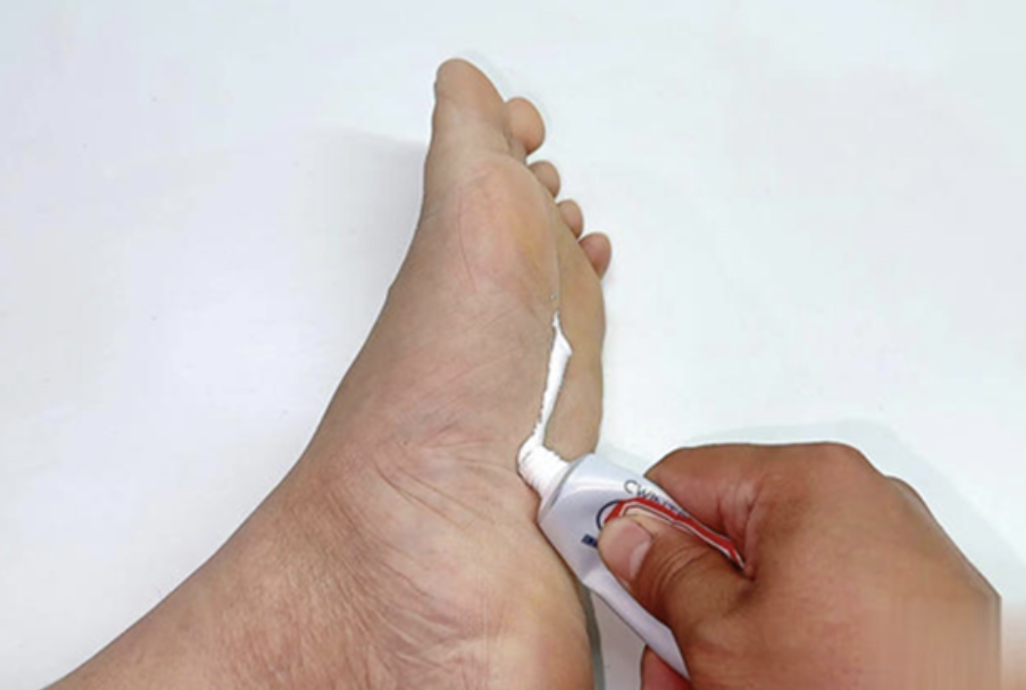 Lúc này, khi về nhà vào buổi tối, bạn chỉ cần rửa sạch chân và bôi kem đánh răng vào lòng bàn chân.