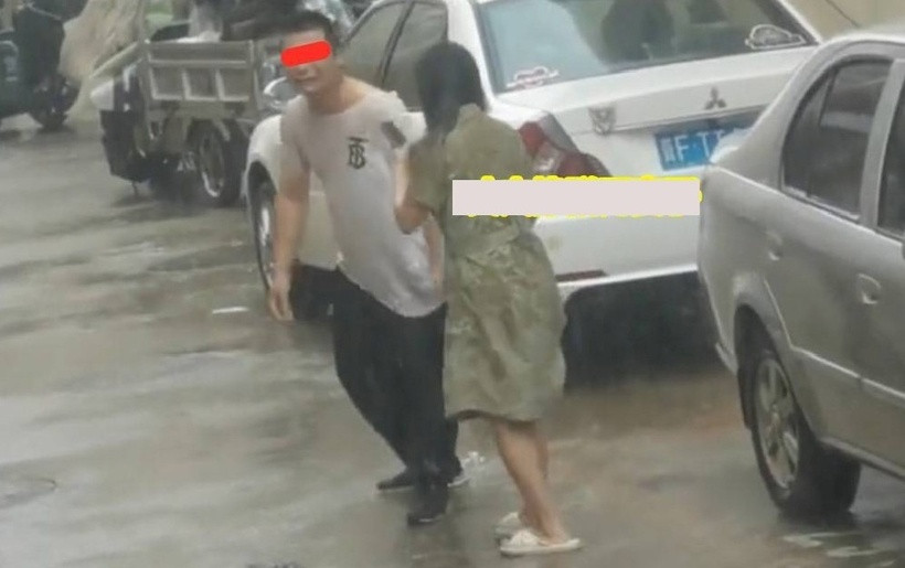 Cả hai cùng đứng dưới những cơn mưa, ôm nhau khóc. Ảnh: Sohu.