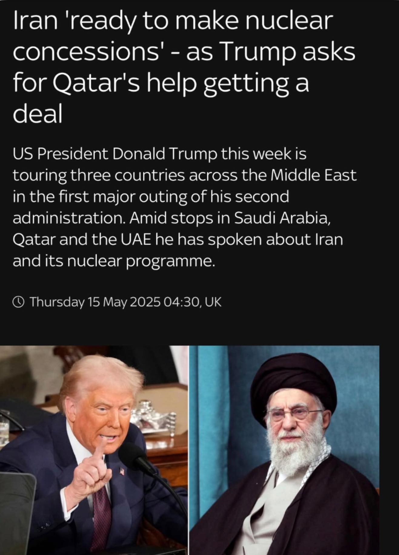 Sự sẵn sàng đàm phán đột ngột của Iran sau nhiều năm làm giàu uranium đến độ tinh khiết 60%, chỉ thiếu chút nữa là đạt đến cấp độ vũ khí hạt nhân . Hoa Kỳ đã chi gần 1 tỷ Dollar trong ba tuần gần đây chỉ để nhắm vào các chiến binh Houthi, đủ để chứng minh rằng áp lực tối đa có hiệu quả.
