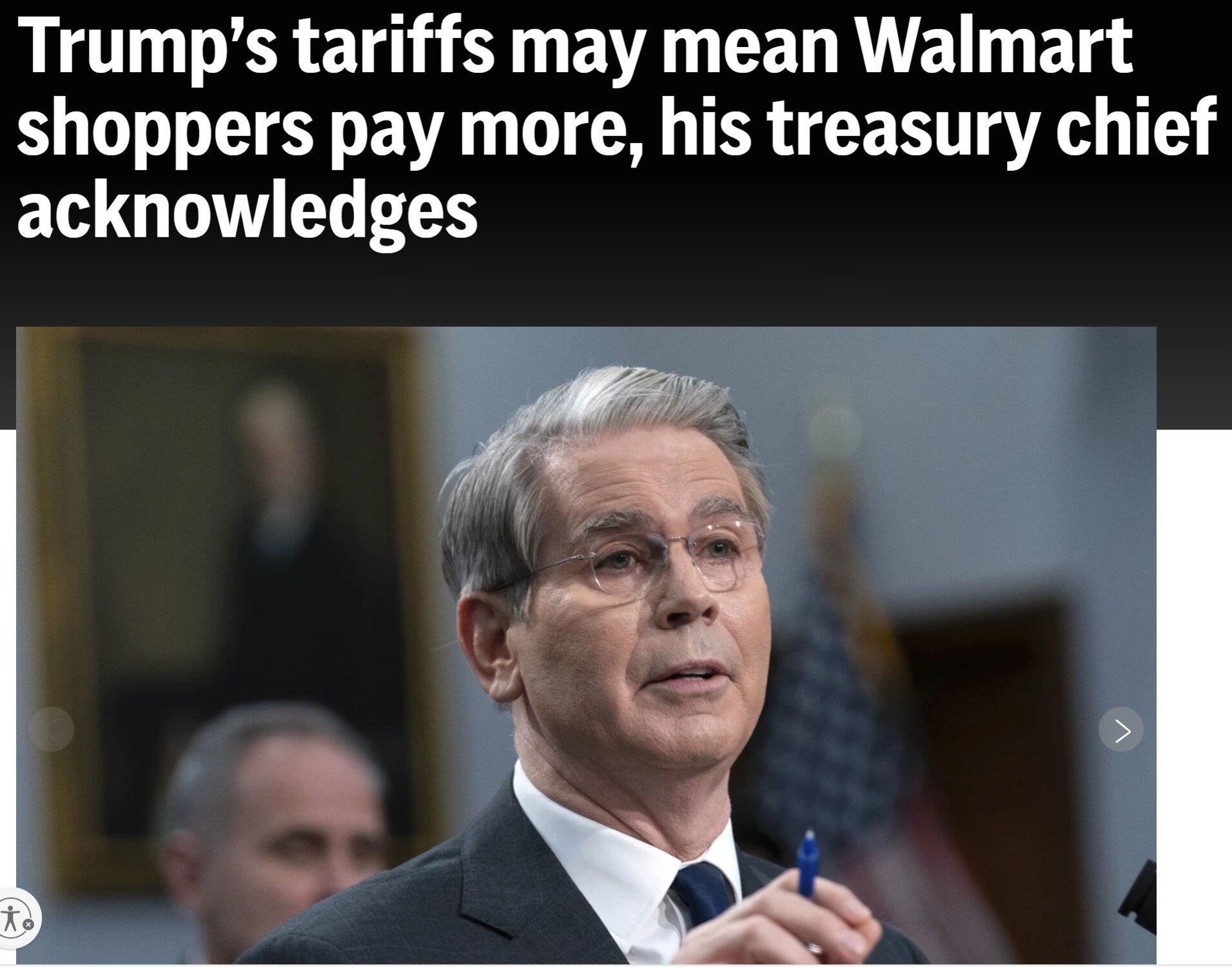 Bessent cho biết Walmart trong cuộc gọi thu nhập của ḿnh vào thứ năm đă có nghĩa vụ theo các quy định của liên bang "phải đưa ra kịch bản xấu nhất để họ không bị kiện", gợi ư trong một cuộc phỏng vấn của NBC rằng việc tăng giá sẽ không nghiêm trọng theo quan điểm của ông.