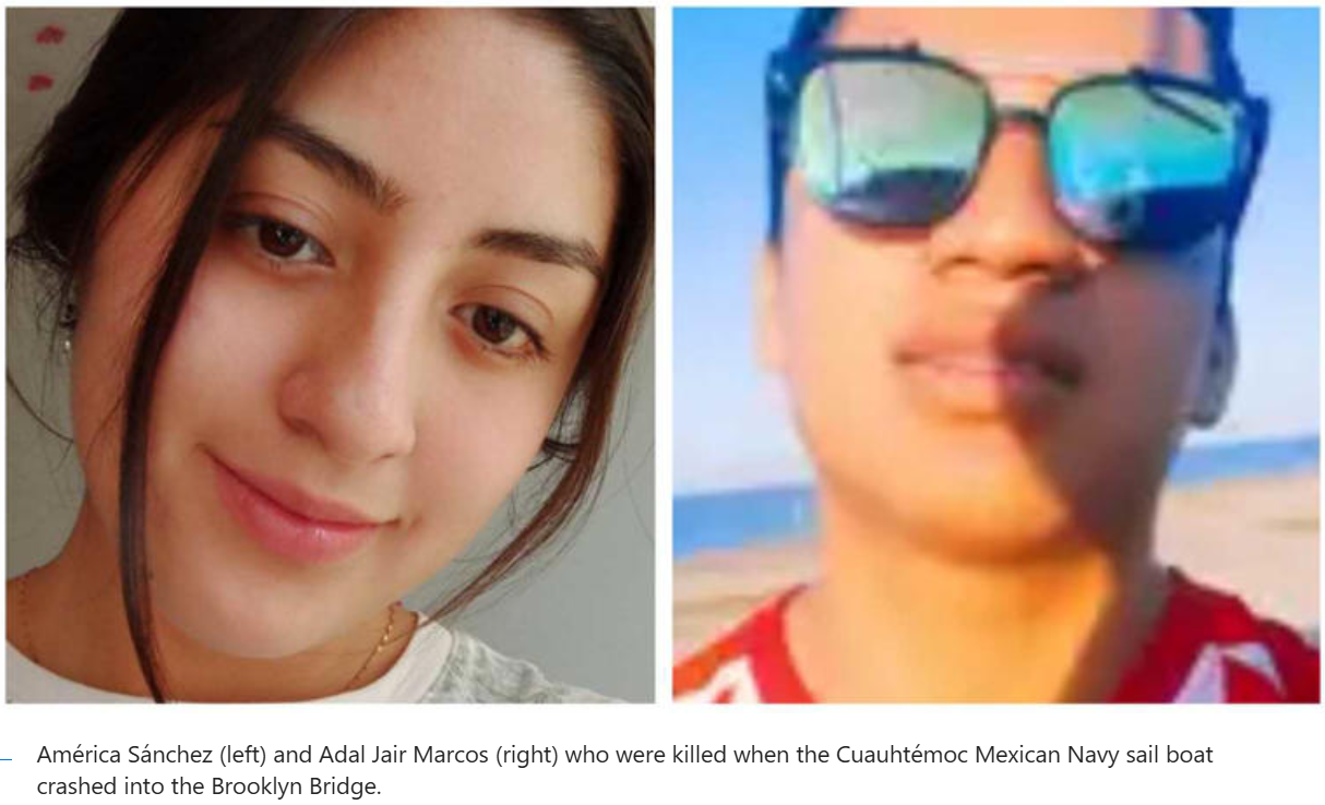 Các quan chức đã xác định được một trong hai người tử vong sau khi một tàu của Hải quân Mexico đâm vào Cầu Brooklyn là một phụ nữ 20 tuổi.