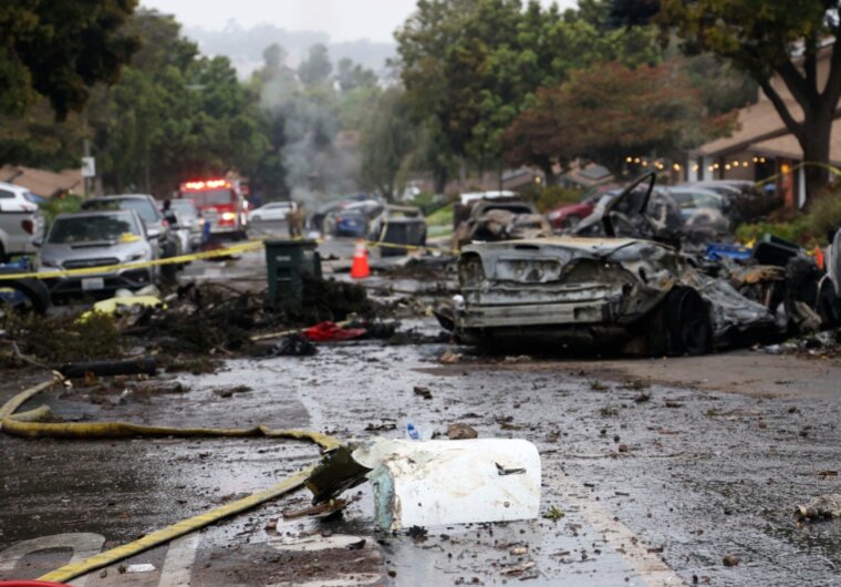 Một phi cơ hạng nhẹ lao xuống khu dân cư ở thành phố San Diego, bang California, khiến ít nhất một người chết, thiêu rụi nhiều ngôi nhà và ôtô.