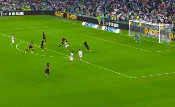 Phút 40 trận đấu trên sân Benito Villamarin, Isco đột phá vào trung lộ, trước khi mở bóng sang cánh phải cho Antony. Cựu cầu thủ MU xử lý bình tĩnh, trước khi tung cú cứa lòng kỹ thuật, đưa bóng theo quỹ đạo không thể cản phá, biến nỗ lực bay người của thủ môn Valencia thành vô nghĩa.
