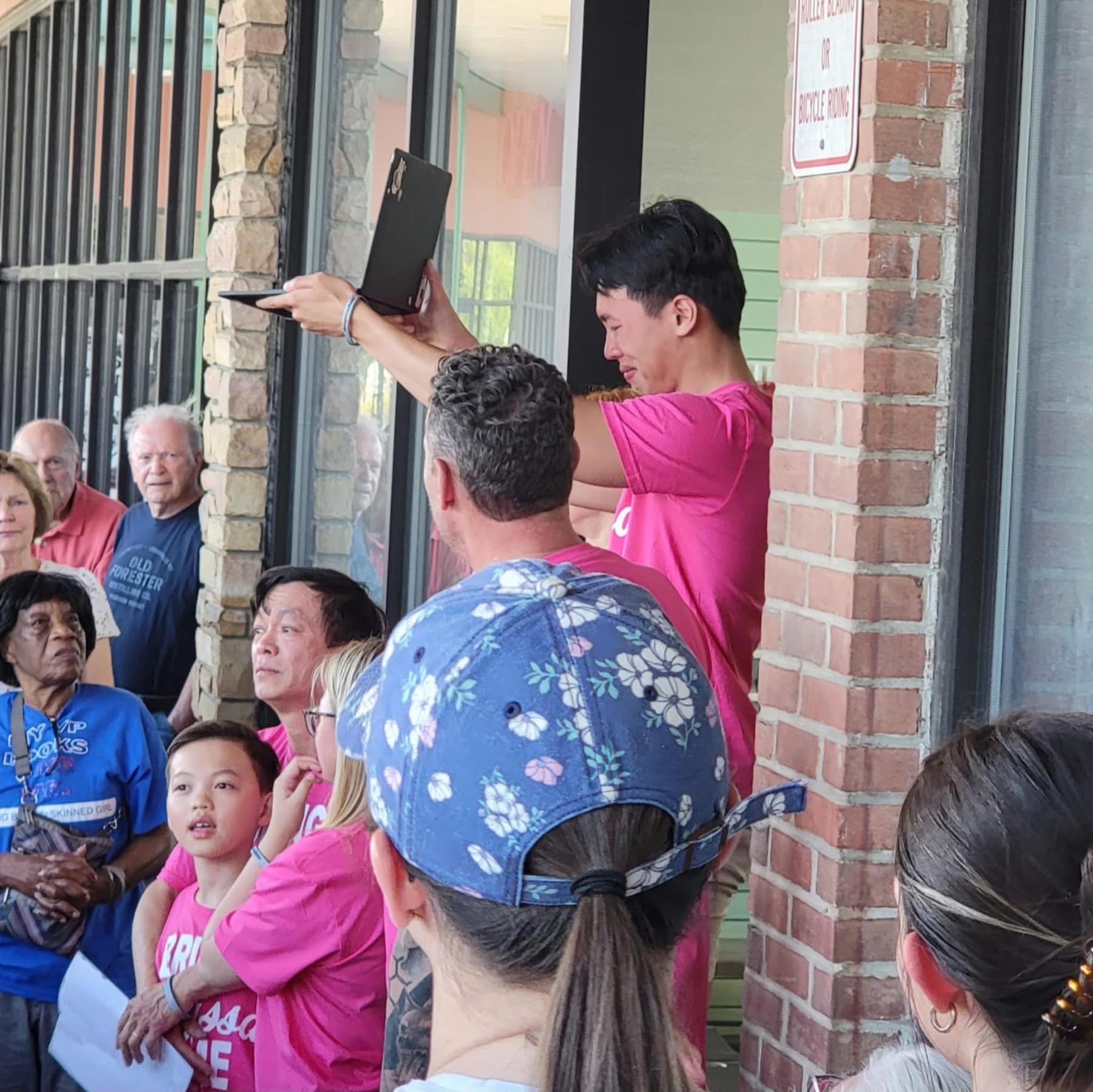 Khoảng 200 người tụ họp bên ngoài tiệm Nail Palace and Spa của bà Tuyền ở Hagerstown, Maryland, hôm 4/6 để bày tỏ sự ủng hộ cho bà. (Ảnh: Facebook Bring Melissa home)