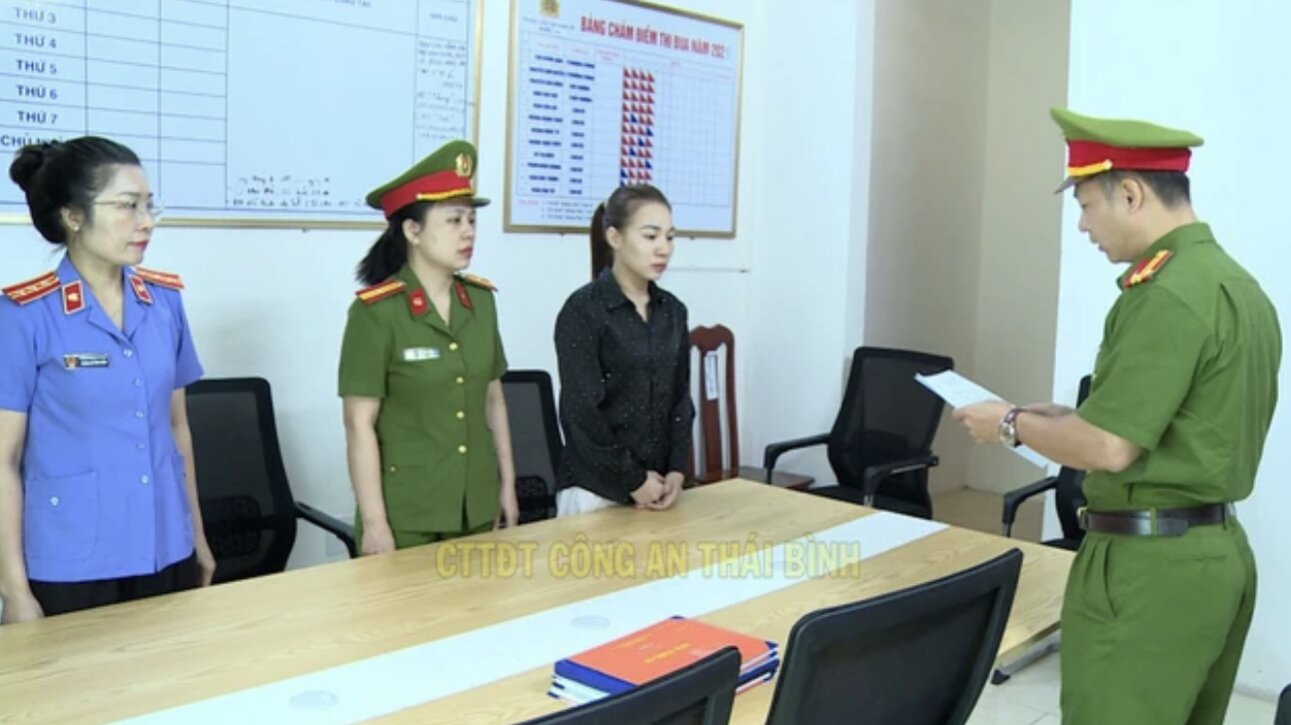 Đối tượng Nguyễn Thị Mai trước Cơ quan Cảnh sát điều tra. Ảnh: CA tỉnh Thái B́nh