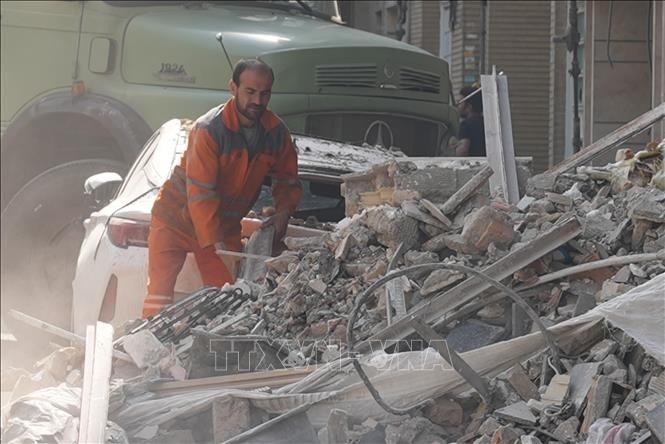 Lực lượng cứu nạn tại hiện trường toà nhà bị phá huỷ sau các vụ không kích của Israel xuống thủ đô Tehran, Iran ngày 13/6/2025 (Ảnh minh họa)