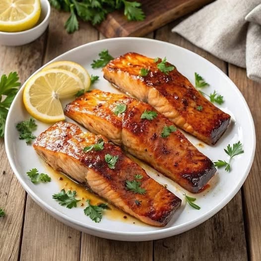 - Đặt phi lê cá hồi lên khay. Phết đẫm nước sốt.
