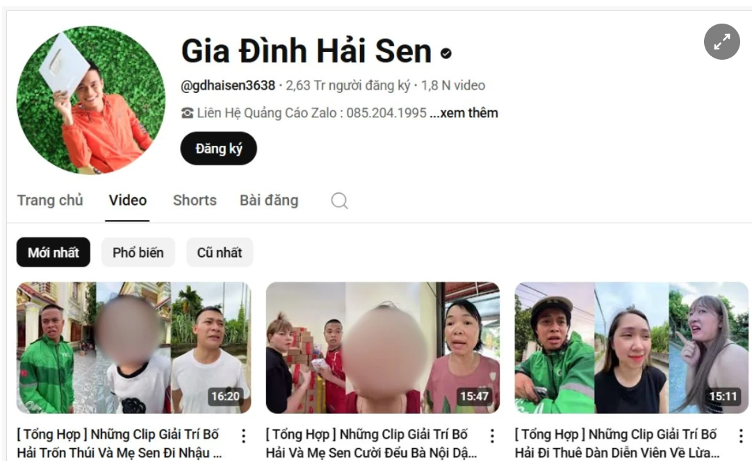 Kênh Gia Đ́nh Hải Sen từng chia sẻ nhiều clip gây tranh căi. Ảnh: Gia Đ́nh Hải Sen/YouTube.
