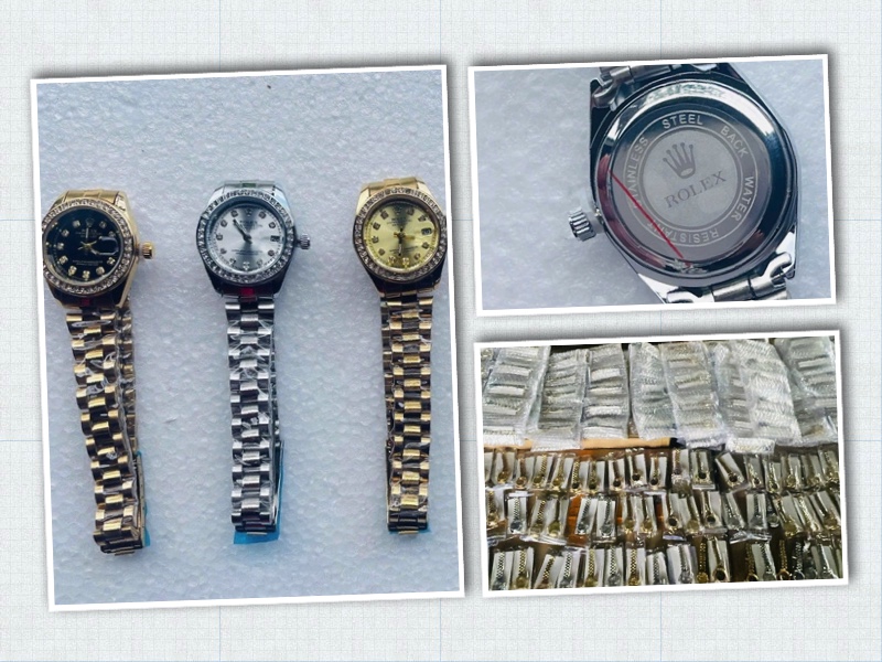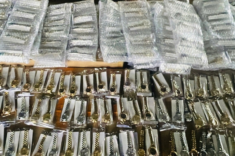 Qua kiểm tra thực tế, cơ quan chức năng phát hiện nhiều hàng hóa không khai báo, trong đó có 450 đồng hồ đeo tay nghi giả nhãn hiệu Rolex cùng hàng bách hóa như mỹ phẩm, bật lửa, sạc dự phòng, đèn ô tô…