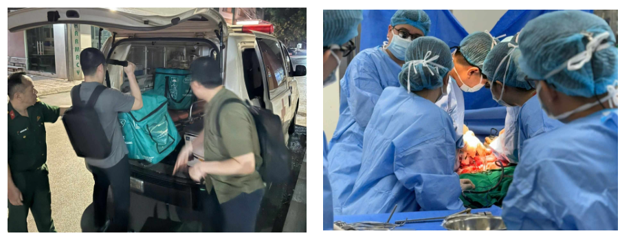 Đồng hồ vừa nhích qua ngày 24/6, tạng gan được phẫu thuật để lấy tại Bệnh viện E. Thùy gan phải được đưa về Bệnh viện Trung ương Quân đội 108 lúc 2h; thuỳ gan trái được chuyển về một cơ sở y tế tư nhân khác để ghép cho một bệnh nhi.