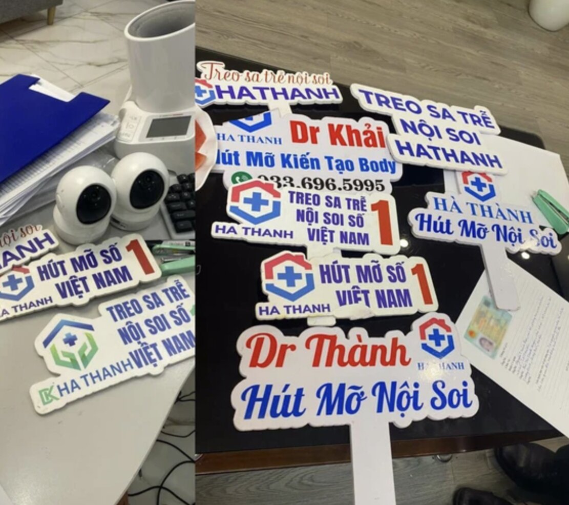 Các biển quảng cáo, dụng cụ và tài liệu thu giữ tại cơ sở thẩm mỹ HT CLINIC