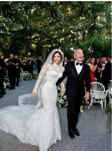 Bezos và Lauren Sánchez đă làm lễ kết hôn sang trọng vào ngày 27/6 tại nhà thờ Basilica of San Giorgio Maggiore trên ḥn đảo cùng tên ở Venice, Italy, dưới sự tham dự của khoảng 200-250 khách mời nổi tiếng như Oprah Winfrey, Kim - Khloé Kardashian, Leonardo DiCaprio, Tom Brady…