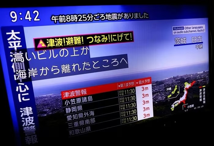 Truyền hình Nhật Bản ban bố cảnh báo sóng thần. Ảnh: Reuters