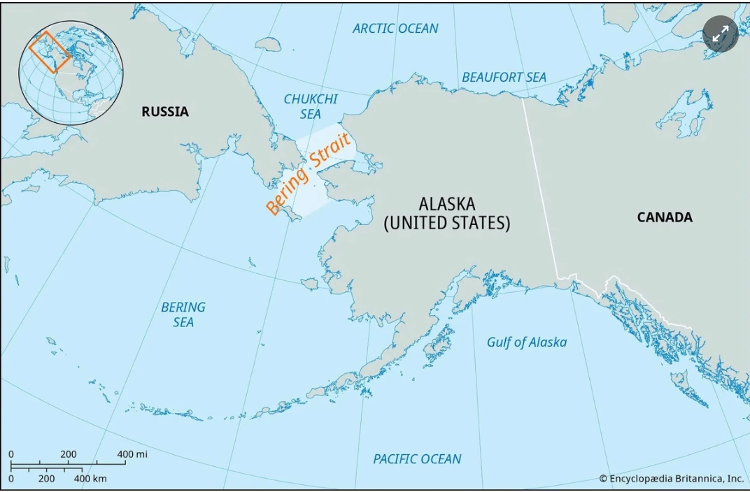 Bản đồ vùng eo biển Bering. Ảnh: Britannica.