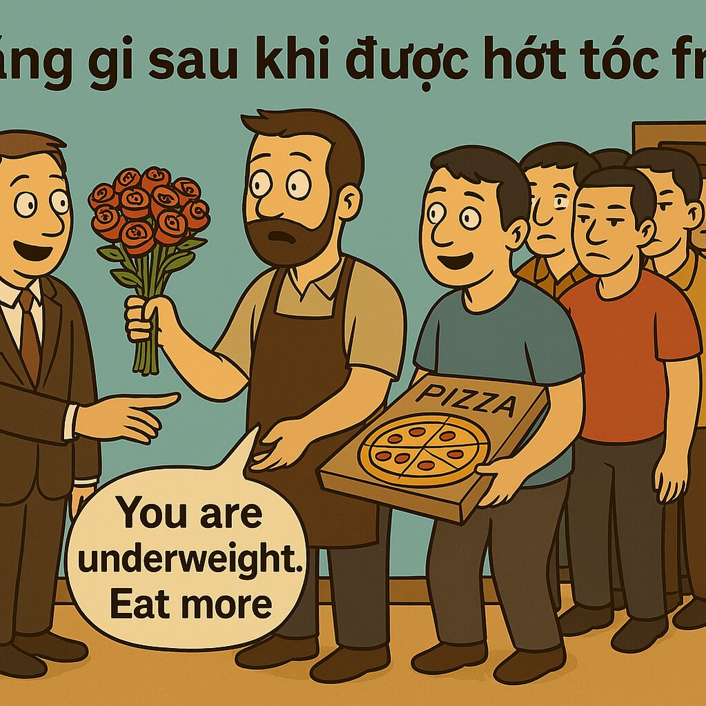 Một lát sau, một người Ý vào cắt tóc cũng được miễn phí, thế là sáng hôm sau chủ tiệm nhận được 20 chiếc bánh Pizza.