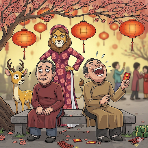 Ngày Tết, hai người bạn thân gặp lại nhau sau một thời gian dài xa cách. Sau vài câu chuyện hỏi thăm, một người tò mò hỏi: