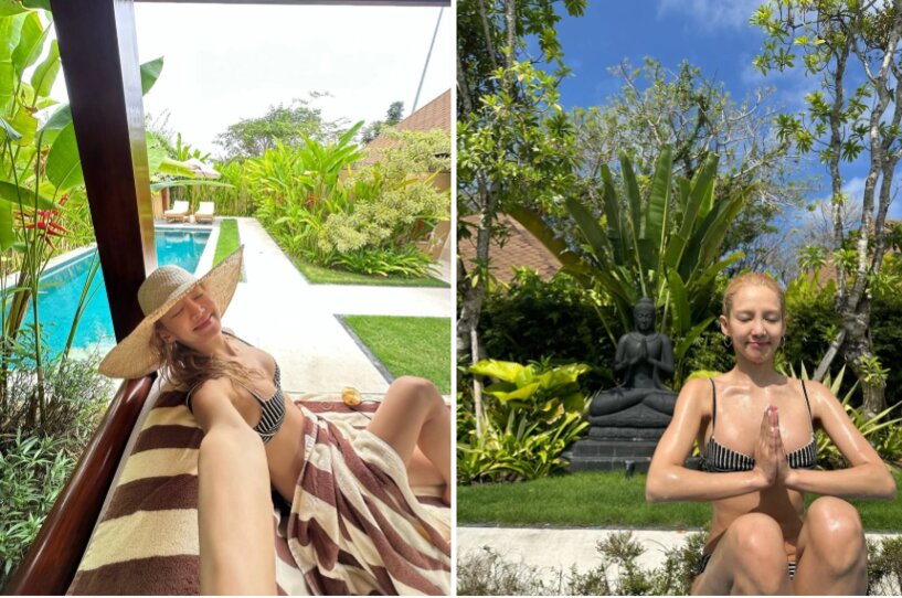 Qua loạt ảnh, có thể thấy Hyoyeon đang thư giãn tại một khu nghỉ dưỡng. Nữ ca sĩ tắm nắng, bơi, tập yoga… Đặc biệt, thành viên SNSD khoe vóc dáng gợi cảm, cân đối trong bộ bikini màu đen trắng.