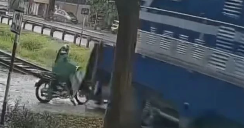 Một clip ghi lại cảnh tượng xe máy va chạm với tàu hỏa tại điểm giao cắt ở xã Lạng Giang (Bắc Ninh).