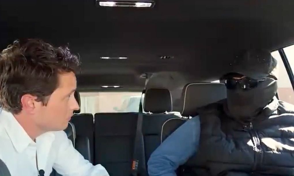 Phóng viên David Culver của CNN phỏng vấn một thủ lĩnh trong băng đảng tội phạm Sinaloa (phải), trong video được công bố ngày 30/9. Ảnh chụp màn h́nh