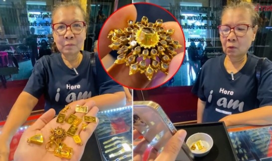 Tổng cộng số vàng có giá hơn 170,000 baht (khoảng $5,500 Mỹ kim), cao hơn rất nhiều lần mong đợi của người phụ nữ bán vàng.