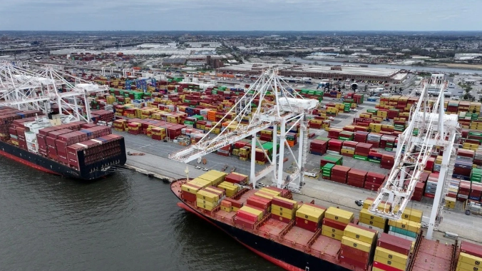 Container tập kết tại cảng Maryland, Mỹ (Ảnh: Reuters).