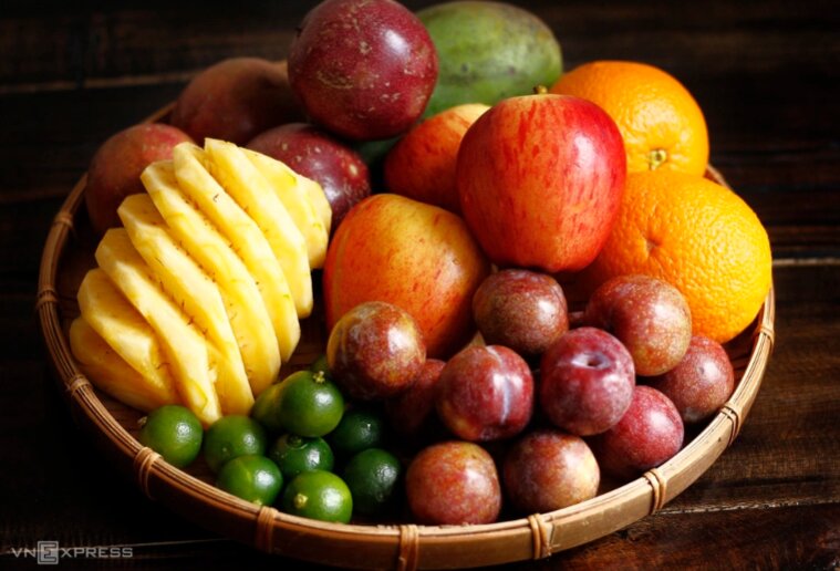 Trái cây màu đỏ, tím, xanh dương giúp chống oxy hóa, gam màu vàng, cam, đỏ có thể chuyển hóa vitamin A, hỗ trợ miễn dịch, màu xanh lá thải độc, bảo vệ tế bào.