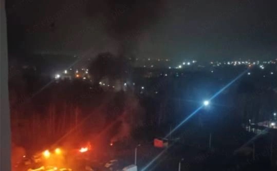 Chú thích ảnh Khói lửa bốc lên tại thành phố Oryol, Nga, sau loạt vụ nổ được cho là do Ukraine thực hiện vào rạng sáng 13/11/2025.Ảnh: Telegram /Supernova+