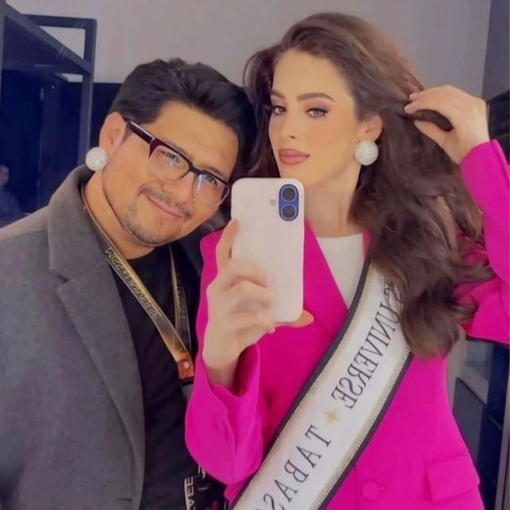 Jorge Figueroa - Giám đốc quốc gia Hoa hậu Hoàn vũ Mexico (trái) và đại diện Mexico tại Hoa hậu Hoàn vũ 2025 (Ảnh: MU).