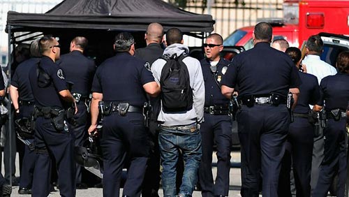 KTLA, những hình ảnh truyền hình trực tiếp cho thấy cảnh sát có vũ trang tập trung bên ngoài một lớp học. Tại đó, lúc đầu một người đàn ông là giáo viên xuất hiện, liền bị cảnh sát vật ngã xuống nền sau khi từ chối hợp tác. Một đoàn học sinh sau đó được đưa ra lớp học với tay giơ cao. Cảnh sát nhảy vào một trong số đó, đè kẻ tình nghi mặc đồ đen xuống nền và còng tay, rồi đưa đi.
