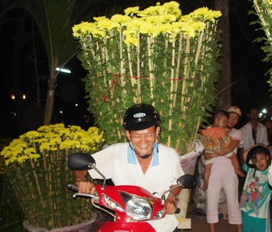 Mọi năm, ông chở cây kiểng cho người ta đến tận giao thừa rồi phi luôn trong đêm về với gia đ́nh ở Đồng Tháp, cách TPHCM hơn 150 cây số, đưa những đồng tiền nóng hổi vừa kiếm được cho vợ con. Năm nay, ông tính chỉ làm đến trưa 30 rồi về. “Tại tui nhỏ con, nh́n ốm yếu nên khách người ta cũng ngại thuê”.