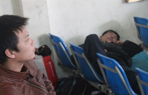 Chưa mua được vé, nhiều hành khách tranh thủ đánh một giấc tại bến xe Vinh
