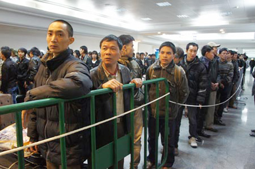 Khoảng 7 giờ sáng nay 3.3 (giờ địa phương), hàng trăm lao động VN đă xếp hàng ở sân bay Zarzis (TP Djerba, Tunisia) để làm thủ tục lên máy bay của Vietnam Airlines về nước. Dự kiến hành tŕnh bay khoảng 11 tiếng.