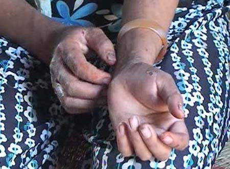 Những vết đen chi chít do gãi ngứa trên thân thể người ở Tây Trà.